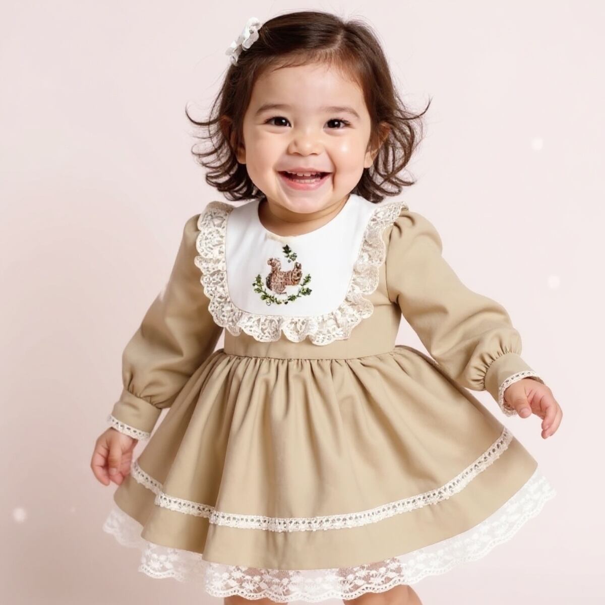 ベビー・キッズにぴったりな、カーキ色のヴィンテージスタイルワンピースです。