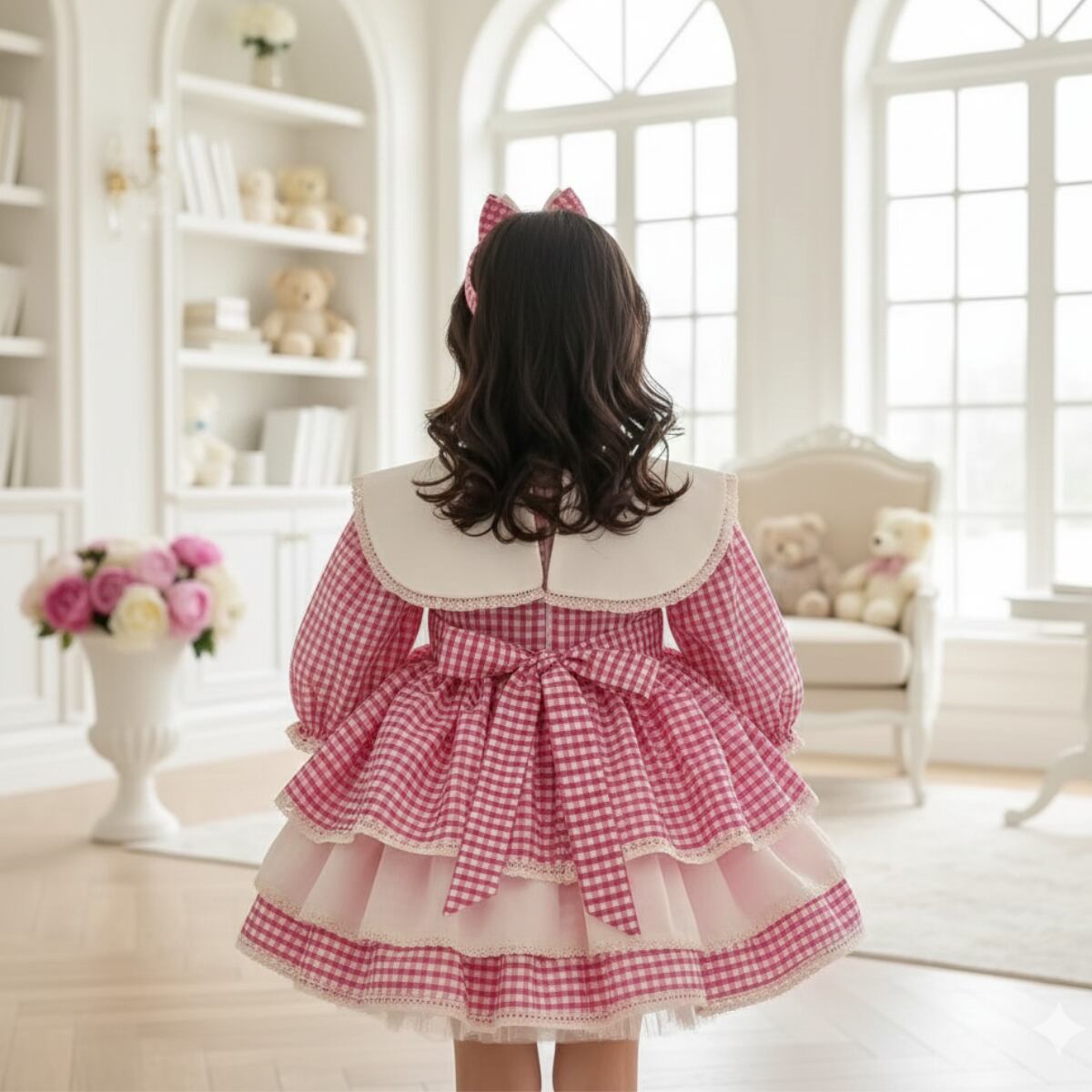 ベビー・キッズにぴったりの、幾重にも重なったフリルが華やかなロングスリーブドレスです。