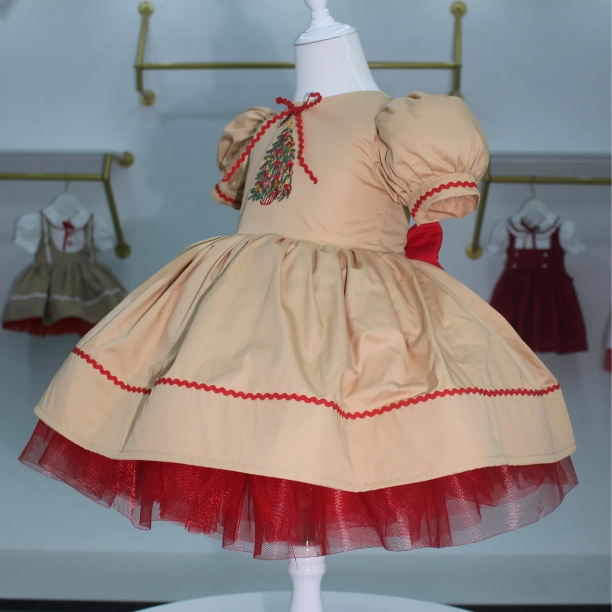 キッズ エレガント ヴィンテージ プリンセス カーキ ドレス クリスマス パーティー 撮影用
